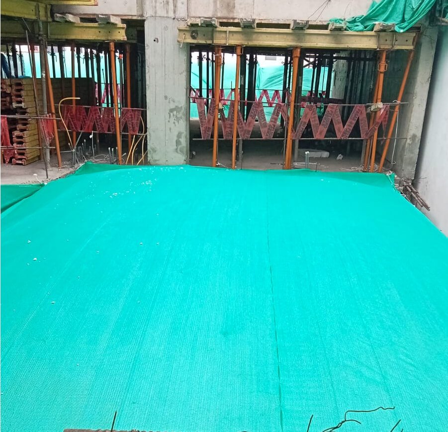 Las redes de protecciòn horizontales pueden complementarse con malla antiescombros para impedir caìdas de material particulado.
